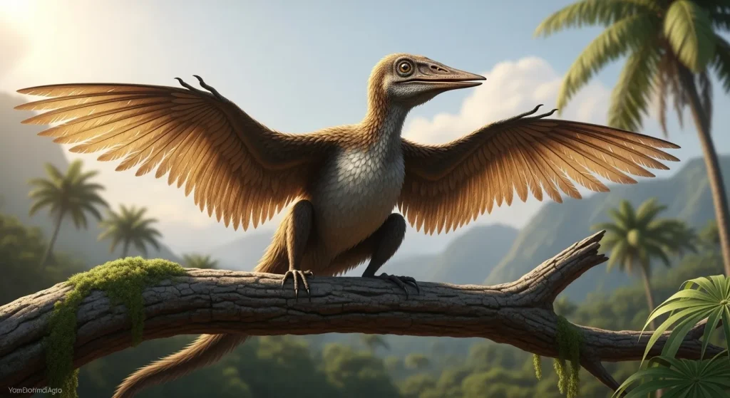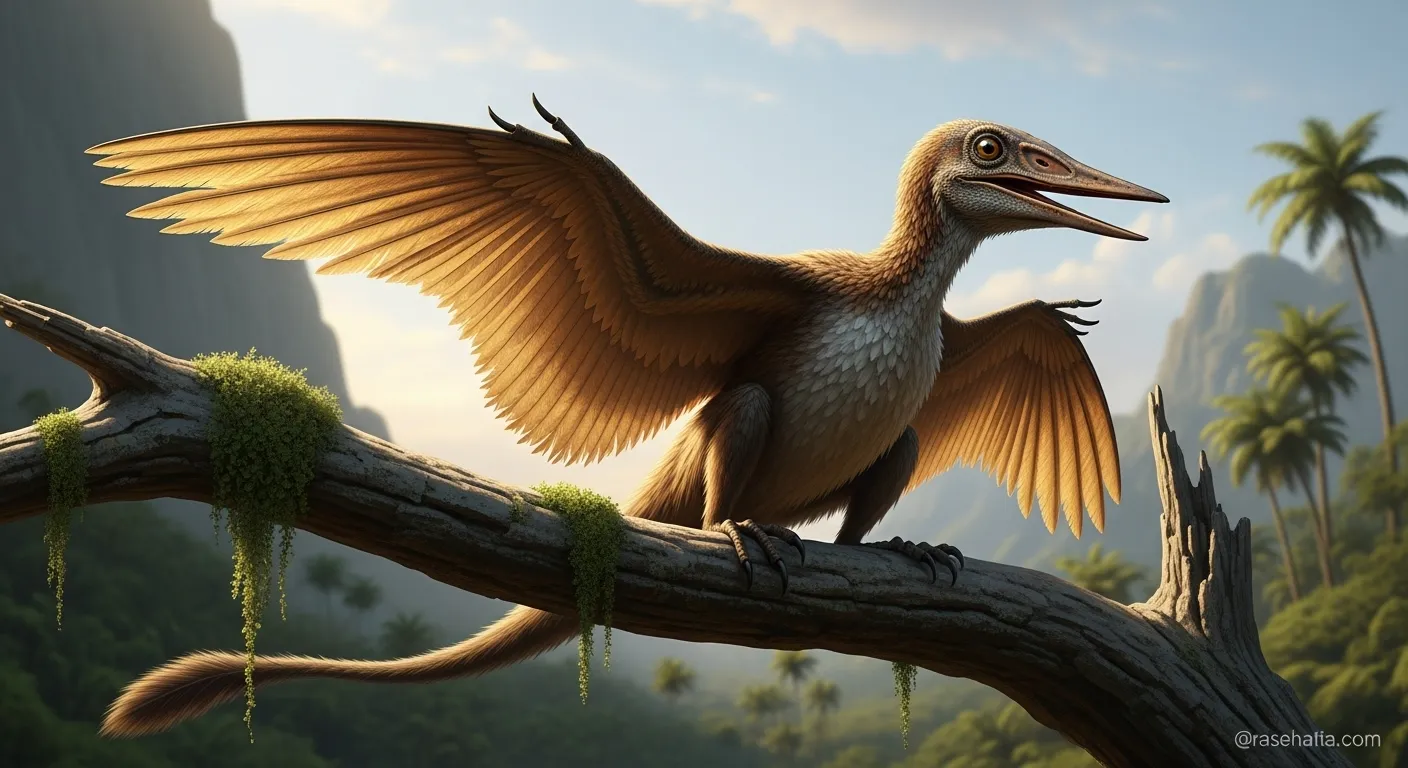 1億5千万年前、ヨーロッパの空気は湿り、珊瑚礁の浅瀬が光を反射していた。その静寂を破るように、一羽の奇妙な生き物が翼を広げる。羽毛をまといながらも、長い尾と歯を持つ――恐竜と鳥のはざまに生きた存在。