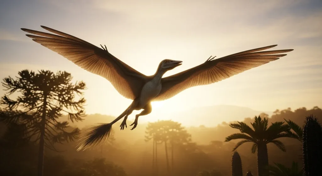 アーケオプテリクスは、鳥と恐竜の境界を示す存在として知られる。羽毛に覆われた体と軽量な骨格、しかし鋭い歯と長い尾を持ち、まさに「進化の分岐点」に立っていた。彼らは恐竜の末裔として空へと挑み、現代の鳥類への道を切り拓いた最初の証人でもある。