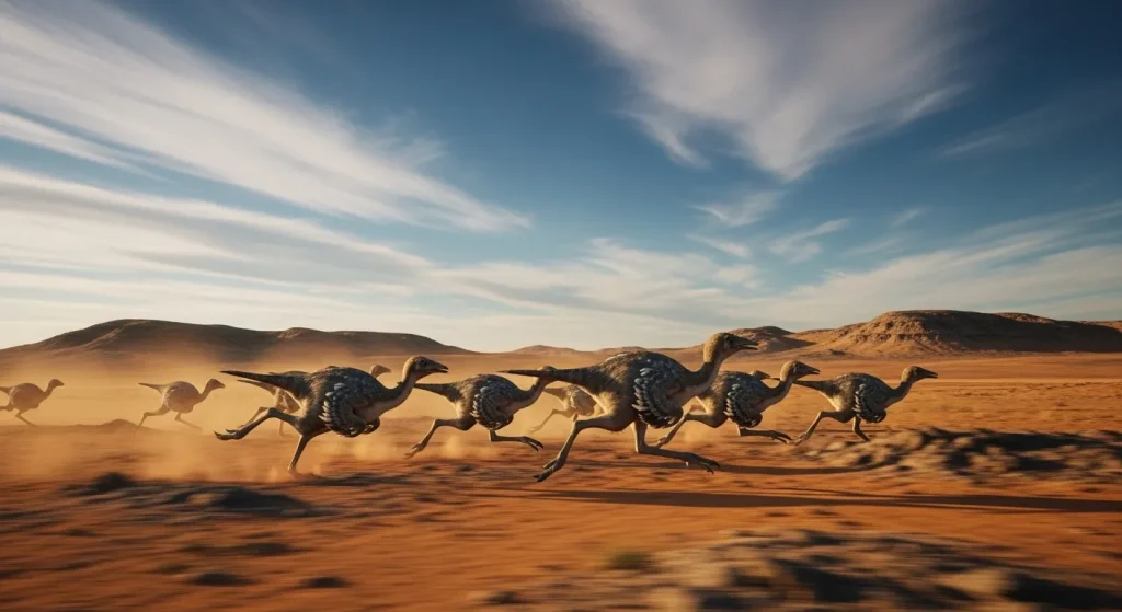 その群れは、現代のダチョウやエミューのように、砂漠の風を切って共に駆けていたに違いない。