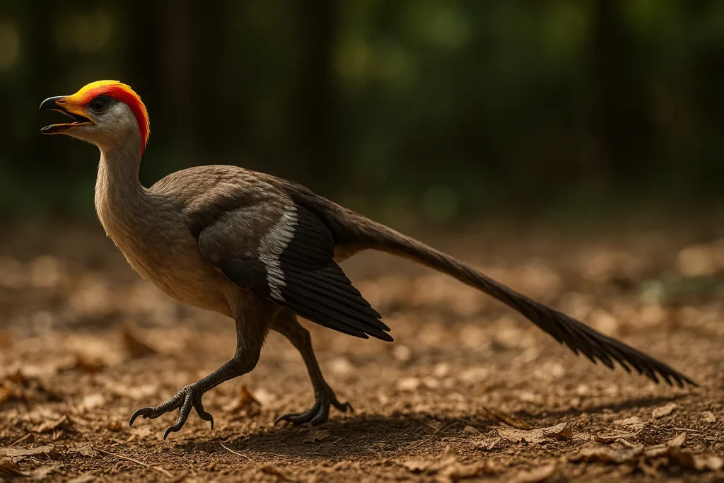 まるで恐竜と鳥の特徴を半分ずつ持っているかのようです。