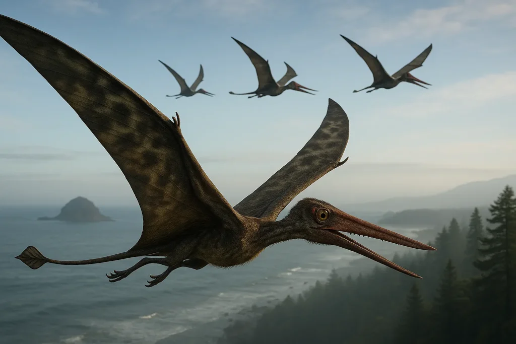 その頭上の空を、まるで別世界のように支配していたのが――「翼竜」です。