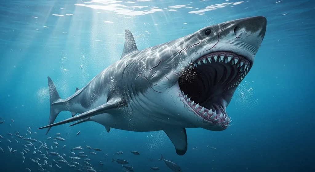 - メガロドンは海洋史上最大級の捕食者で、噛む力は陸上のT. rexを凌駕する。